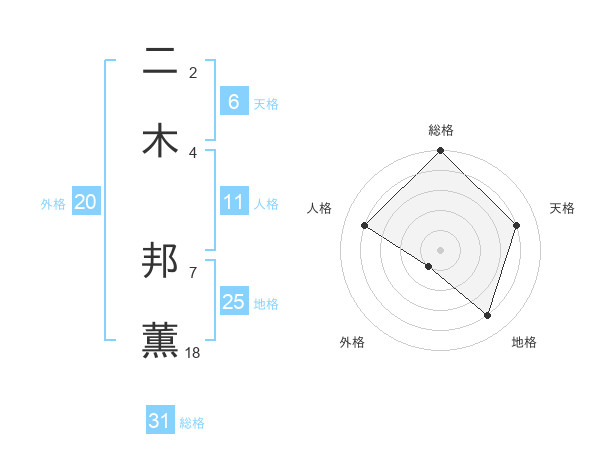 二木 邦薫さんの天格は6画の4点!
