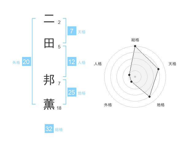 二田 邦薫さんを姓名の画数から五運を鑑定