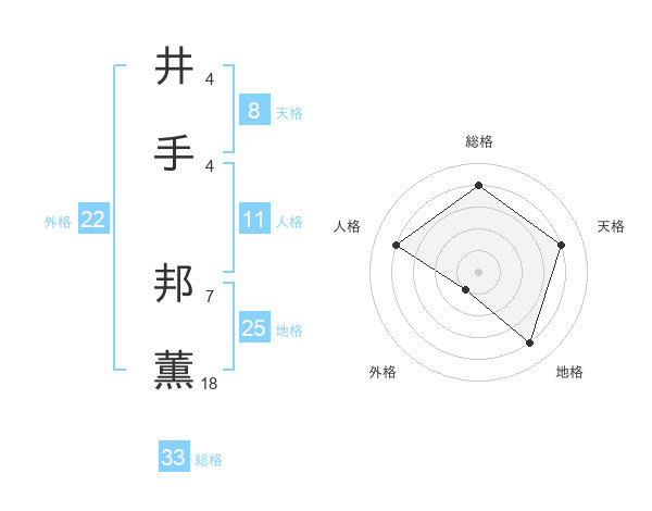 井手 邦薫さんの総格は33画の4点!