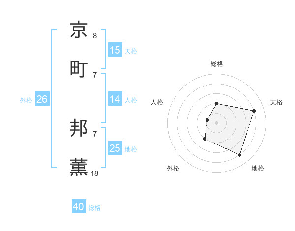 京町 邦薫さんを姓名の画数から五運を鑑定