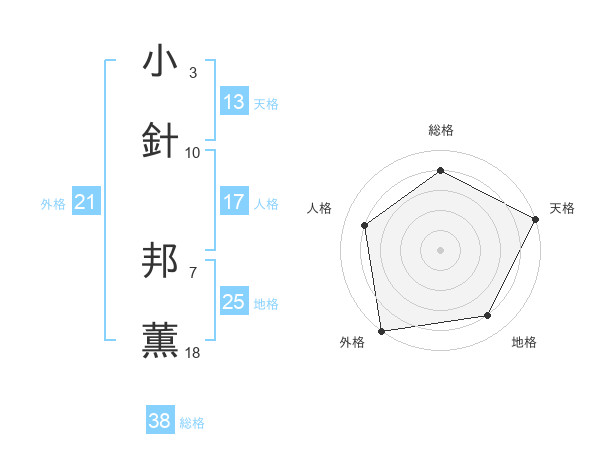 小針 邦薫さんの天格は13画の5点!