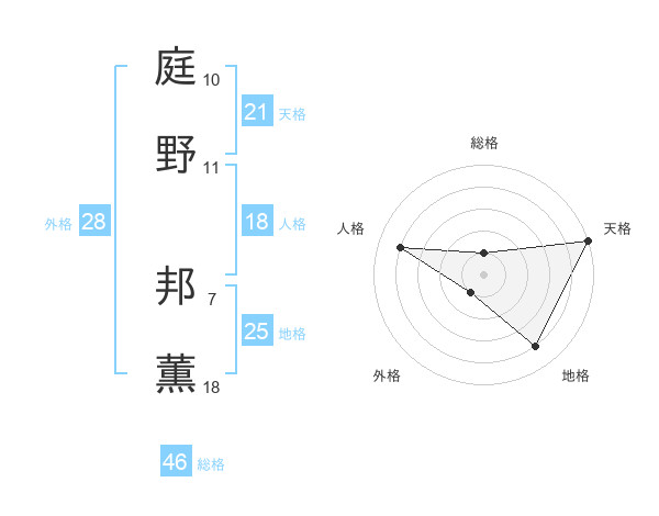 庭野 邦薫さんの天格は21画の5点!