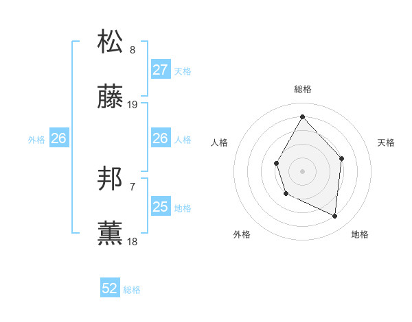 松藤 邦薫さんの総格は52画の4点!