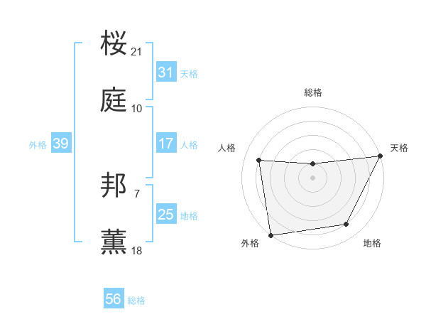 桜庭 邦薫さんの天格は31画の5点!