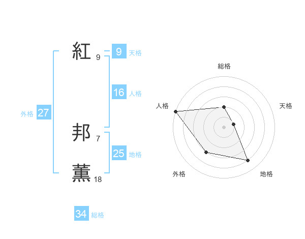 紅 邦薫さんの総格は34画の2点!