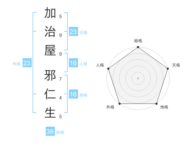 加治屋 邪仁生さんの外格は23画の5点