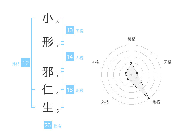 小形 邪仁生さんの地格は16画の5点!