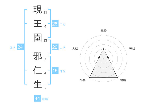 現王園 邪仁生さんの外格は24画の5点!