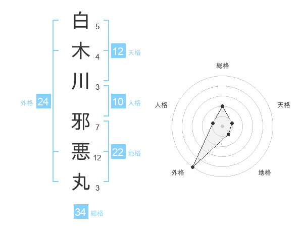白木川 邪悪丸さんの総格は34画の2点!