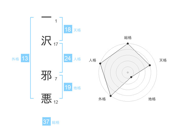 一沢 邪悪さんの総格は37画の5点!