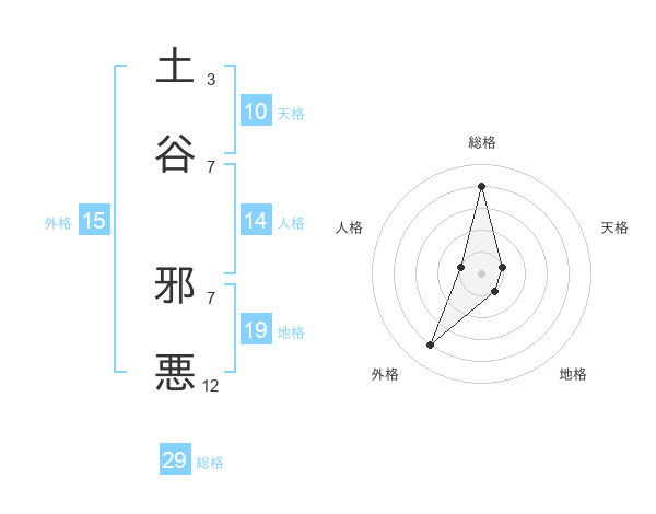 土谷 邪悪さんの総格は29画の4点!