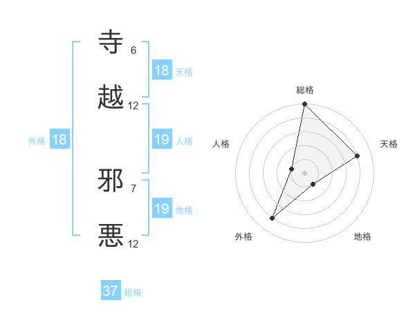 寺越 邪悪さんを姓名の画数から五運を鑑定