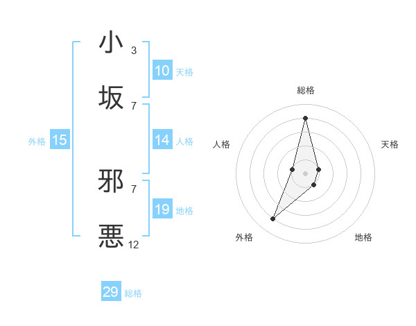 小坂 邪悪さんの総格は29画の4点!