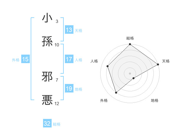 小孫 邪悪さんの天格は13画の5点!