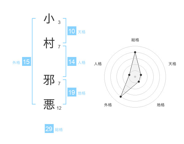 小村 邪悪さんを姓名の画数から五運を鑑定