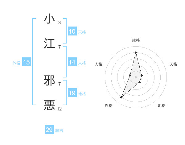 小江 邪悪さんを姓名の画数から五運を鑑定