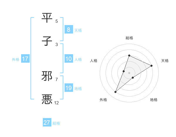 平子 邪悪さんの総格は27画の3点!