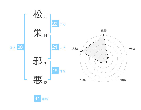 松栄 邪悪さんを姓名の画数から五運を鑑定