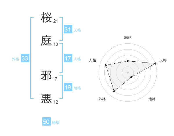 桜庭 邪悪さんの総格は50画の2点!