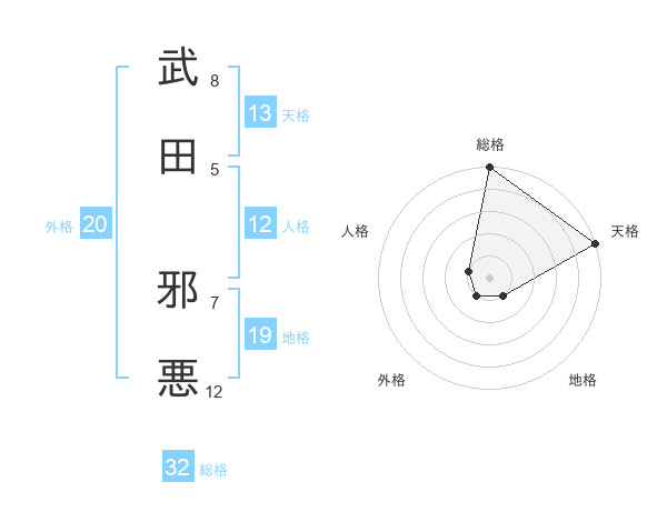 武田 邪悪さんを姓名の画数から五運を鑑定