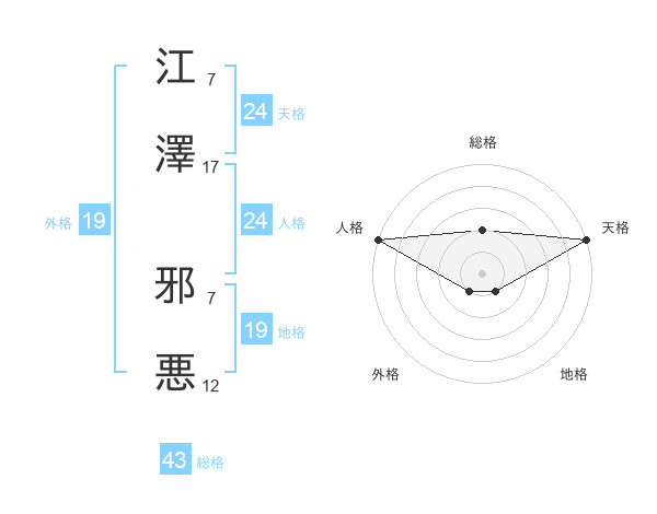 江澤 邪悪さんを姓名の画数から五運を鑑定