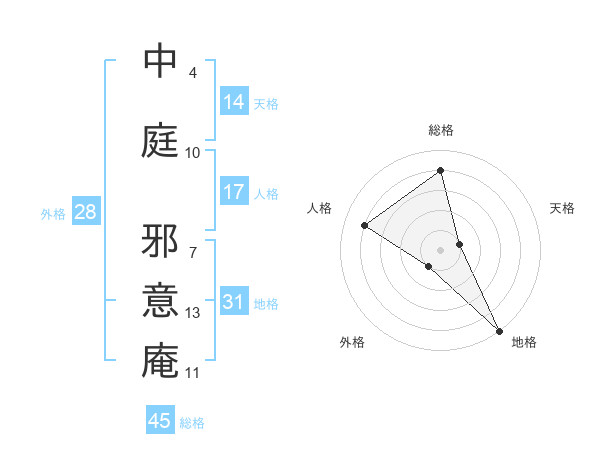 中庭 邪意庵さんの総格は45画の4点!
