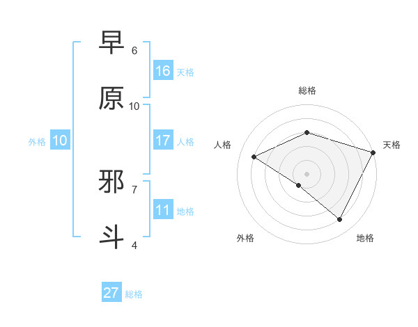 早原 邪斗さんの総格は27画の3点!