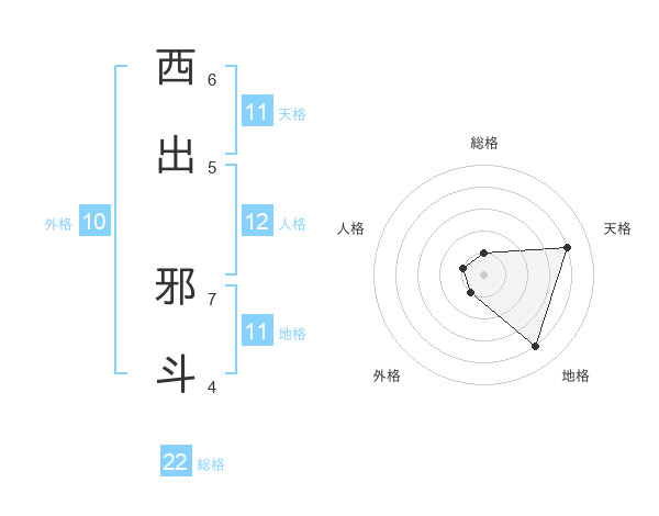 西出 邪斗さんを姓名の画数から五運を鑑定