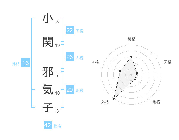 小関 邪気子さんを姓名の画数から五運を鑑定