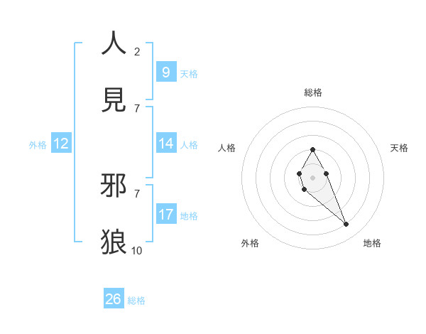 人見 邪狼さんを姓名の画数から五運を鑑定