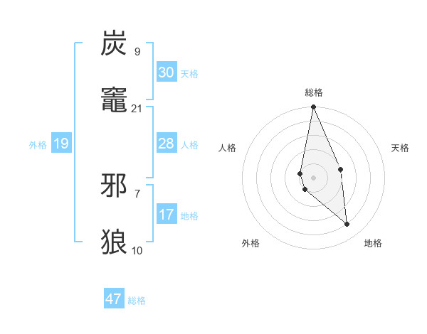 炭竈 邪狼さんの総格は47画の5点!