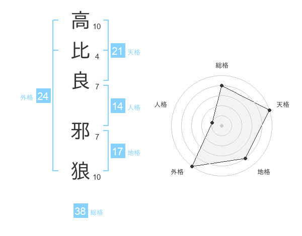 高比良 邪狼さんを姓名の画数から五運を鑑定