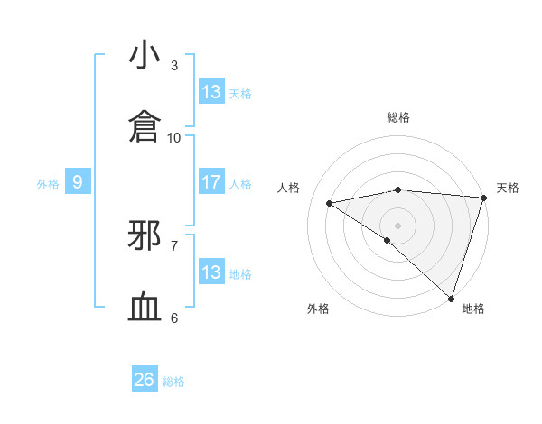 小倉 邪血さんの天格は13画の5点!
