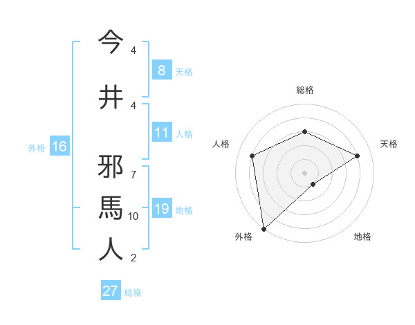 今井 邪馬人さんを姓名の画数から五運を鑑定