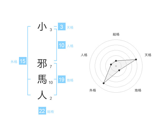 小 邪馬人さんの総格は22画の1点