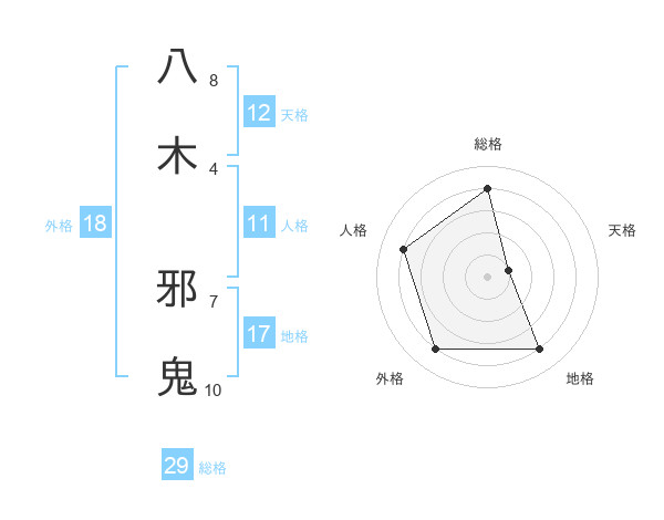 八木 邪鬼さんの総格は29画の4点!
