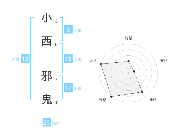 小西 邪鬼さんの外格は13画の5点!