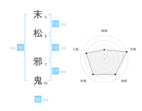 末松 邪鬼さんを姓名の画数から五運を鑑定