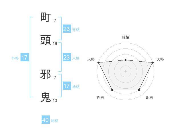 町頭 邪鬼さんの総格は40画の2点!