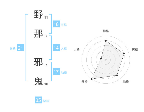 野那 邪鬼さんを姓名の画数から五運を鑑定