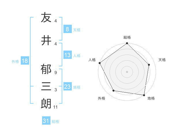 友井 郁三朗さんを姓名の画数から五運を鑑定
