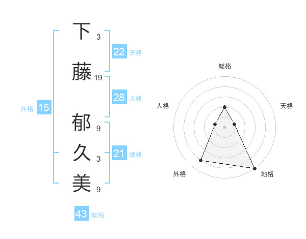 下藤 郁久美さんを姓名の画数から五運を鑑定