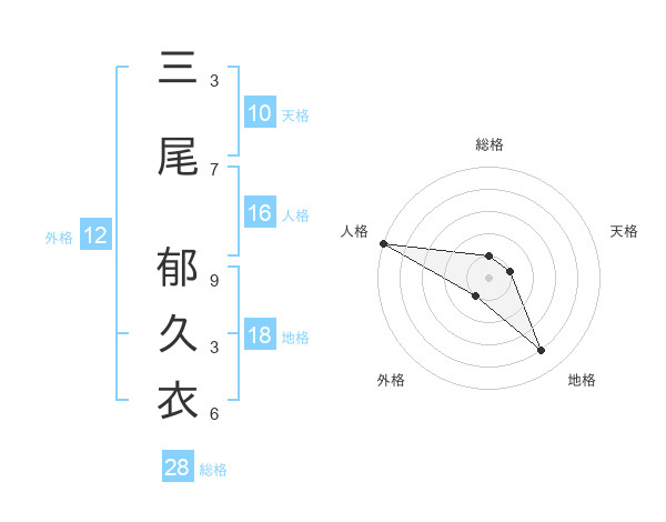 三尾 郁久衣さんを姓名の画数から五運を鑑定