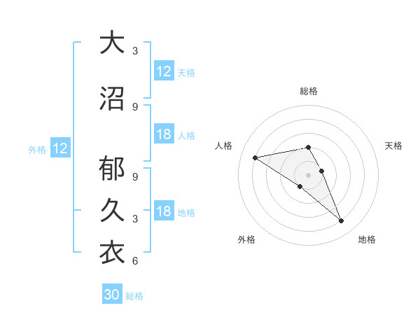 大沼 郁久衣さんを姓名の画数から五運を鑑定