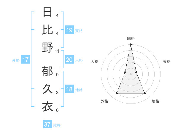 日比野 郁久衣さんを姓名の画数から五運を鑑定