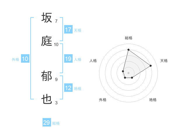 坂庭 郁也さんの総格は29画の4点!