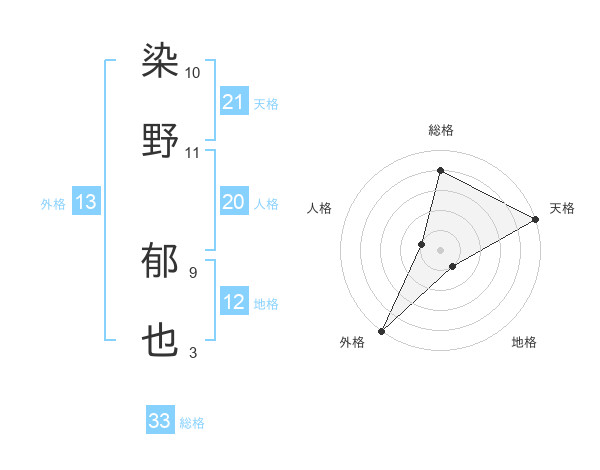 染野 郁也さんの総格は33画の4点!