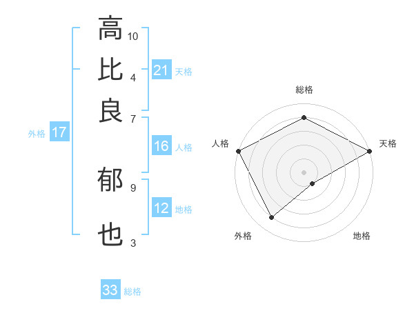 高比良 郁也さんの天格は21画の5点!