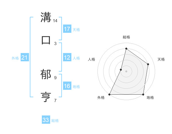 溝口 郁亨さんの天格は17画の4点!