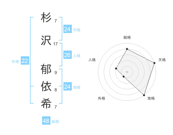 杉沢 郁依希さんの天格は24画の5点!